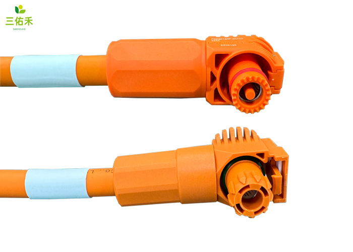 储能线束弯插头橙色非屏蔽对插1500V耐拔插尼龙通信防水连接器线束
